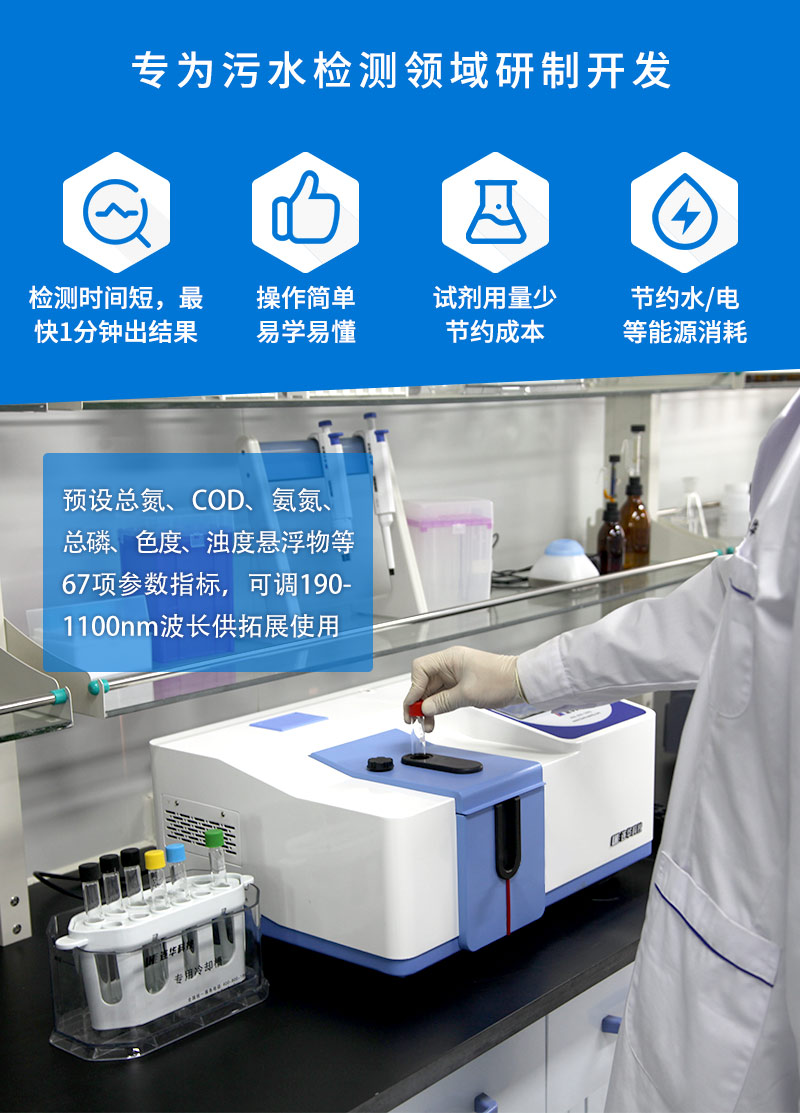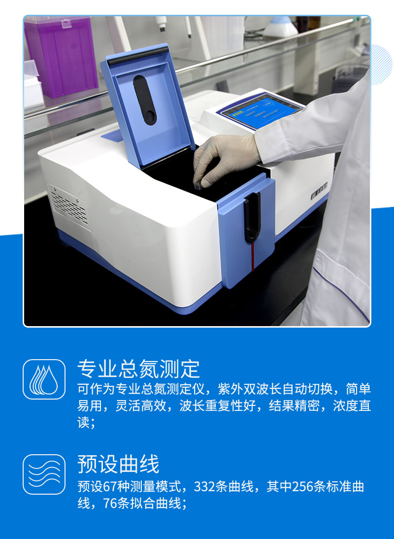 可作為總氮測定儀,紫外雙波長自動切換,波長重復性更好,測量結果更精密,且濃度直讀。